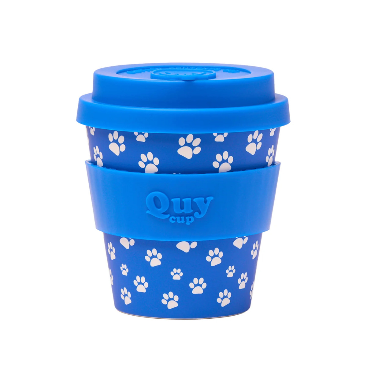 Putna šalica zrađena od recikliranog PET materijala za prehrambenu upotrebu. Sadrži patentirani QuyCup poklopac protiv kapanja i mekanu silikonsku traku protiv opeklina.