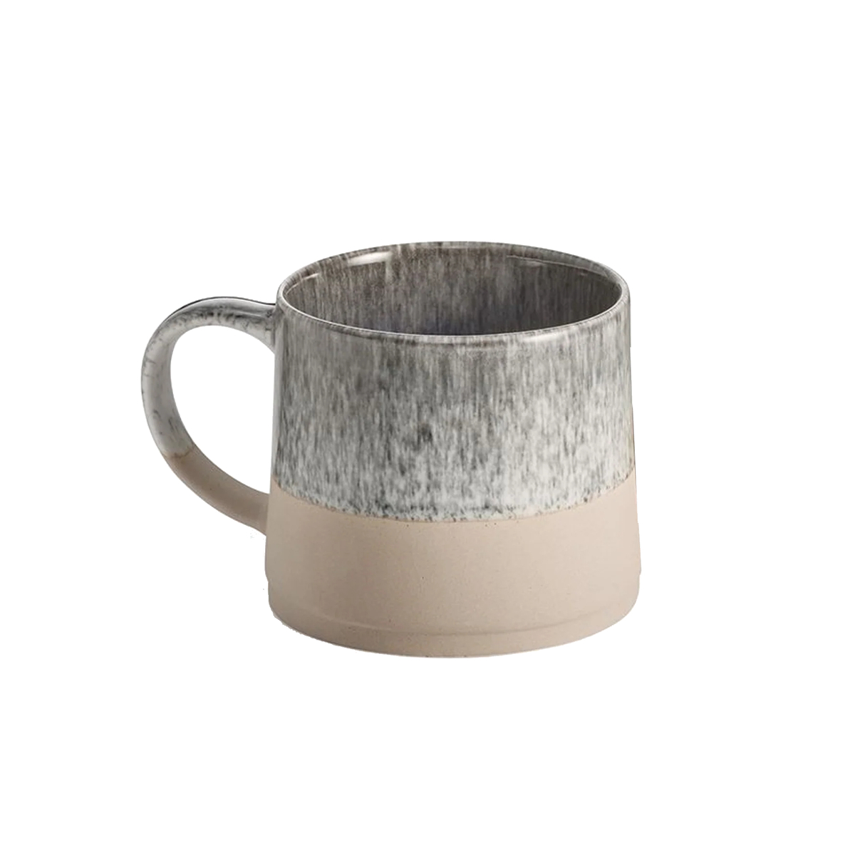 Upečatljiva reaktivna glazura daje ovoj prekrasnoj šalici pravi wow faktor! Posebna tehnika glaziranja stvara zanimljiv i višeslojan površinski izgled procesima taljenja i oksidacije tijekom pečenja, koji se razlikuju od šalice do šalice, čineći svaku šalicu jedinstvenom. Pješčana boja, mat baza s grubim cementnim izgledom, savršeno se kontrastira s upečatljivom glazurom koja se nastavlja na unutrašnjost šalice.