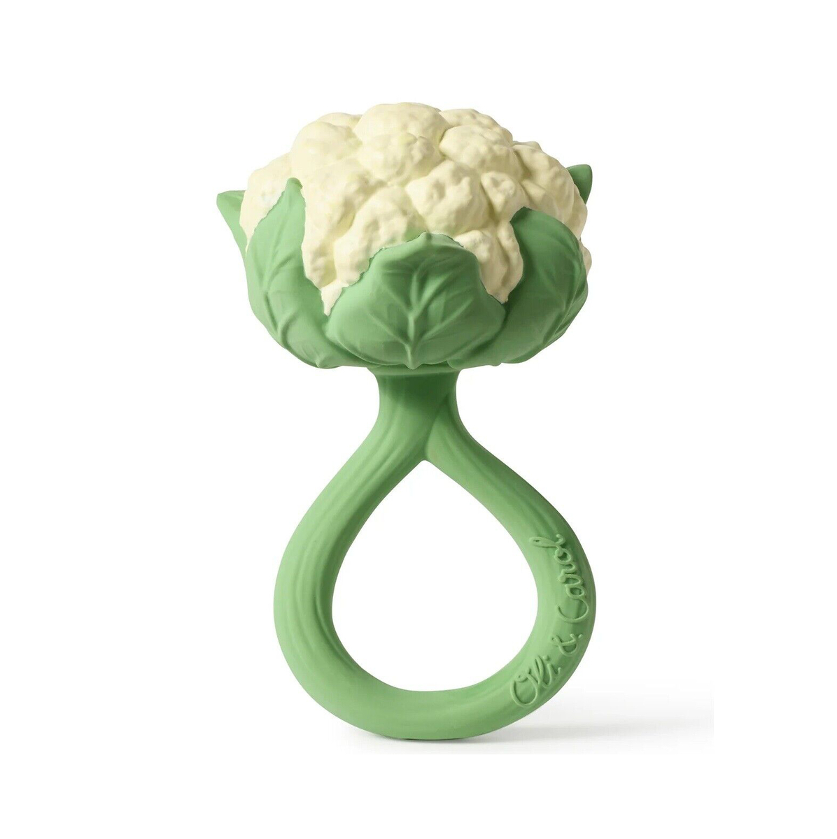 Vanjski dio Oli&Carol grickalice i zvečke prepun je tekstura i detalja koji će pomoći stimulirati bebina osjetila i ublažiti bol desni prilikom izbijanja zubića. Grickalica za zube izrađena je od 100% prirodne kaučuk gume dobivene iz drveta kaučukovca, obojena je prirodnim pigmentima sigurnima za bebe od rođenja.