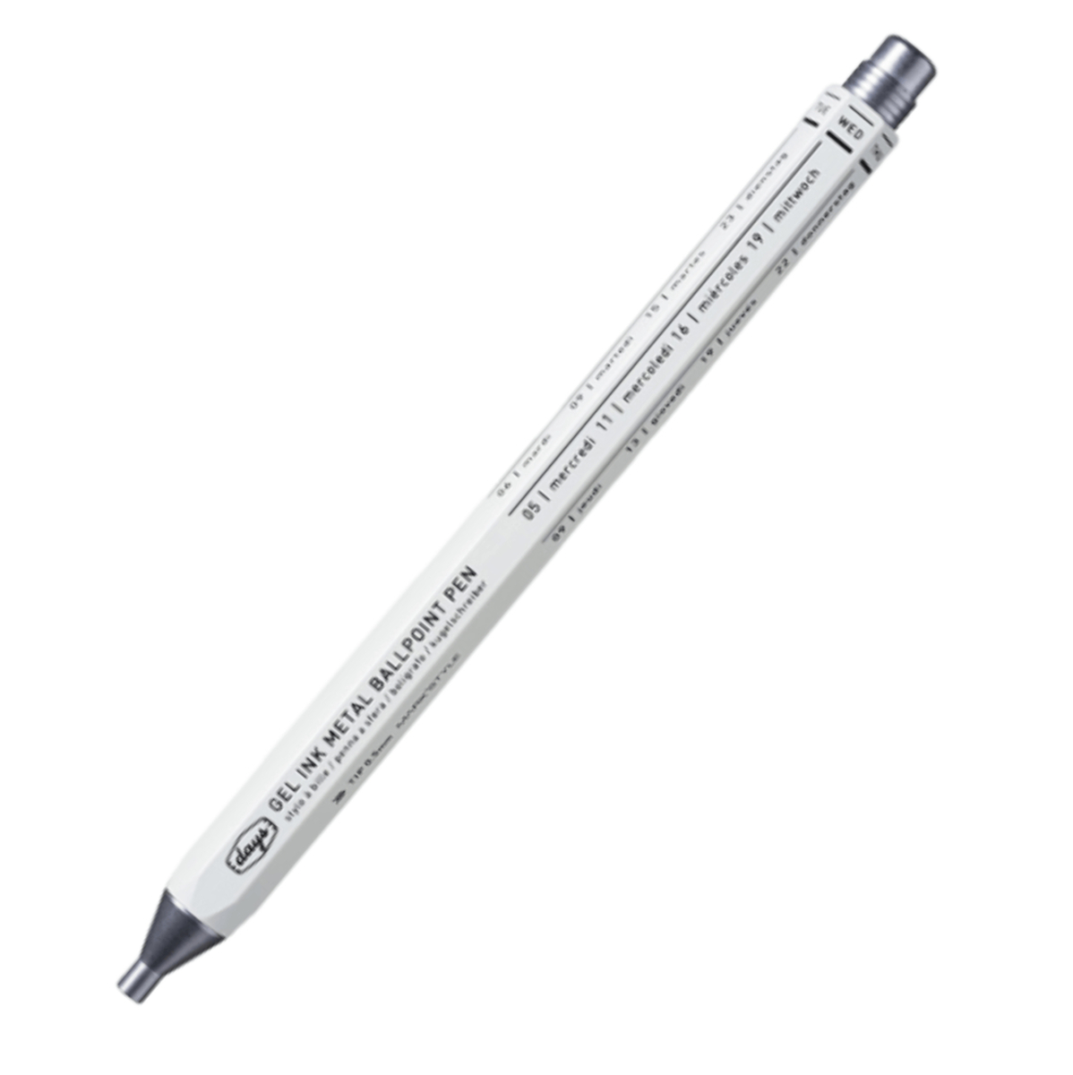 Metalna kemijska olovka retro dizajna s danima u tjednu na pet jezika: engleskom, francuskom, talijanskom, španjolskom i njemačkom.