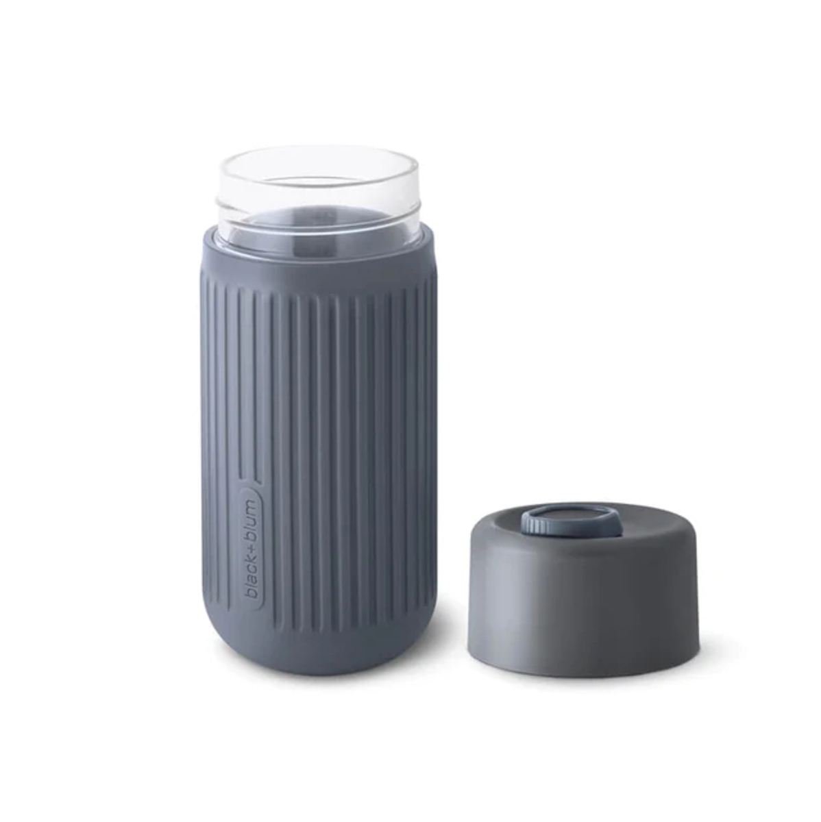 Izdržljiva i lagana 100% staklena šalica od 340 ml potpuno je nepropusna i lako prenosiva, ima vanjski zaštitni silikonski sloj i lako staje u držače za čaše u autima i na biciklima.