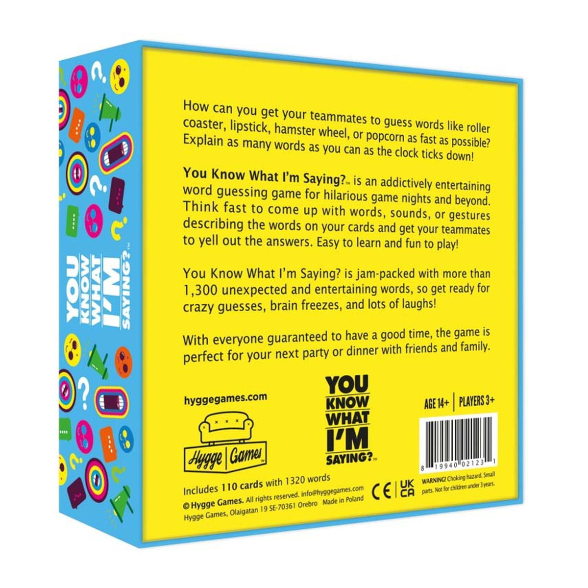 You Know What I'm Saying je zarazno zabavna igra pogađanja riječi: brzo razmišljajte kako biste opisali riječi na vašim karticama i natjerajte suigrače da viču odgovore.