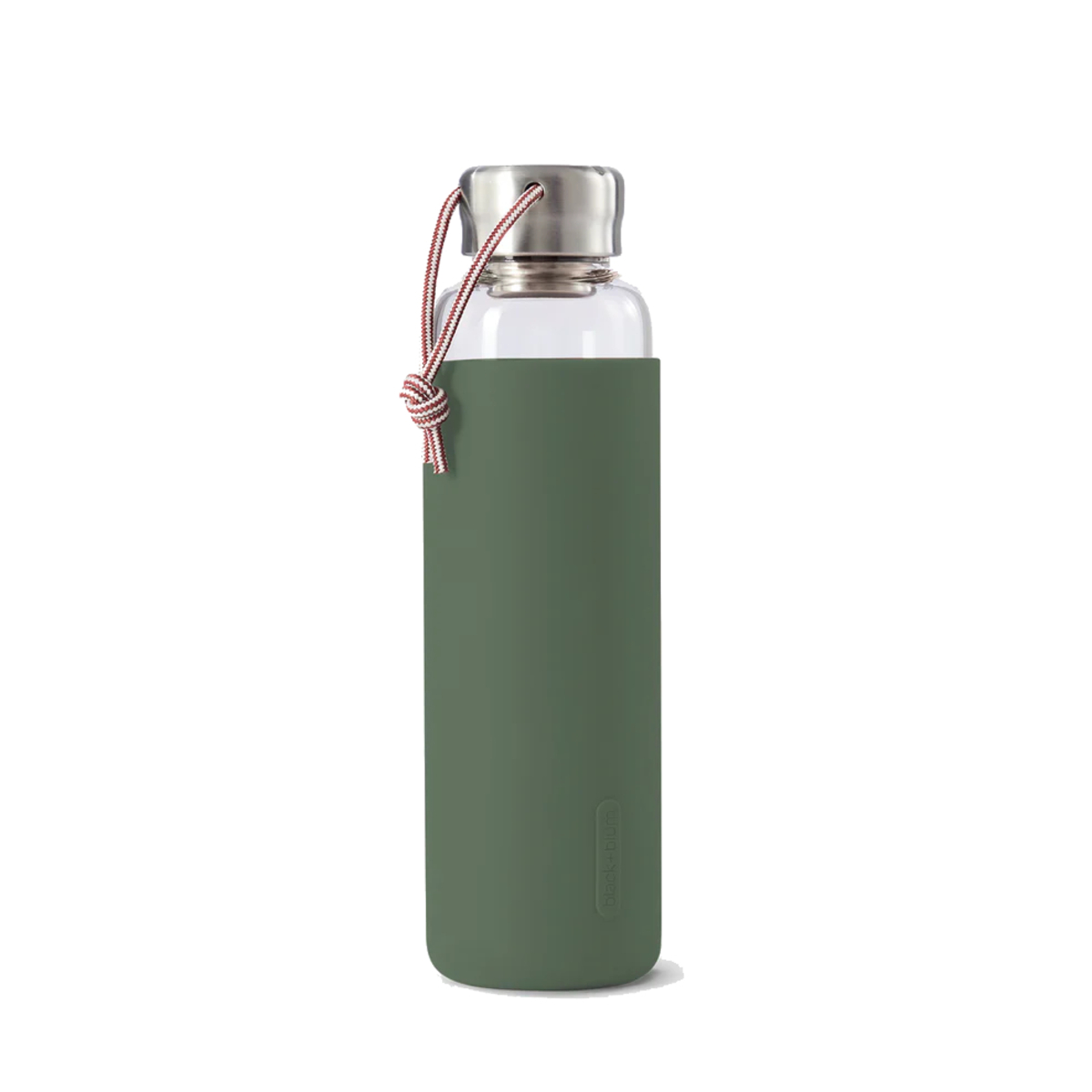 Boca za vodu od borosilikatnog stakla od 600 ml sa zaštitnom neklizajućom navlakom i praktičnim konopcem za lakše nošenje.