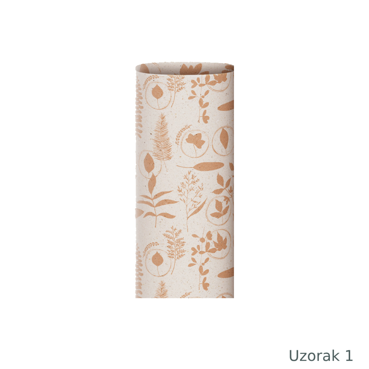 Ukrasni omotni papir od 25% vlakna osušene trave i 75% od 100% recikliranog papira (70 g/m2).
