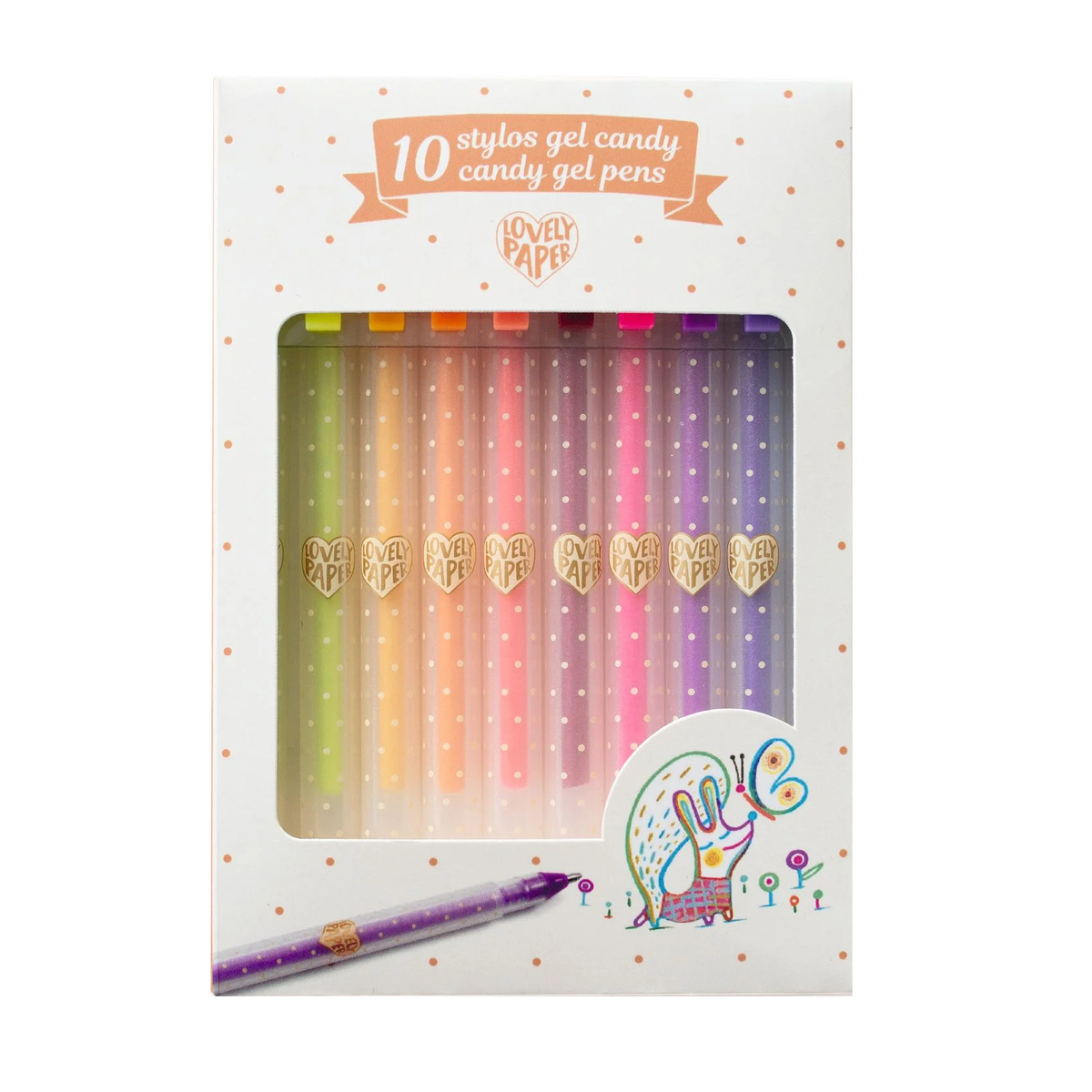 Set od 10 tankih kemijskih gel olovaka u različitim bojama.