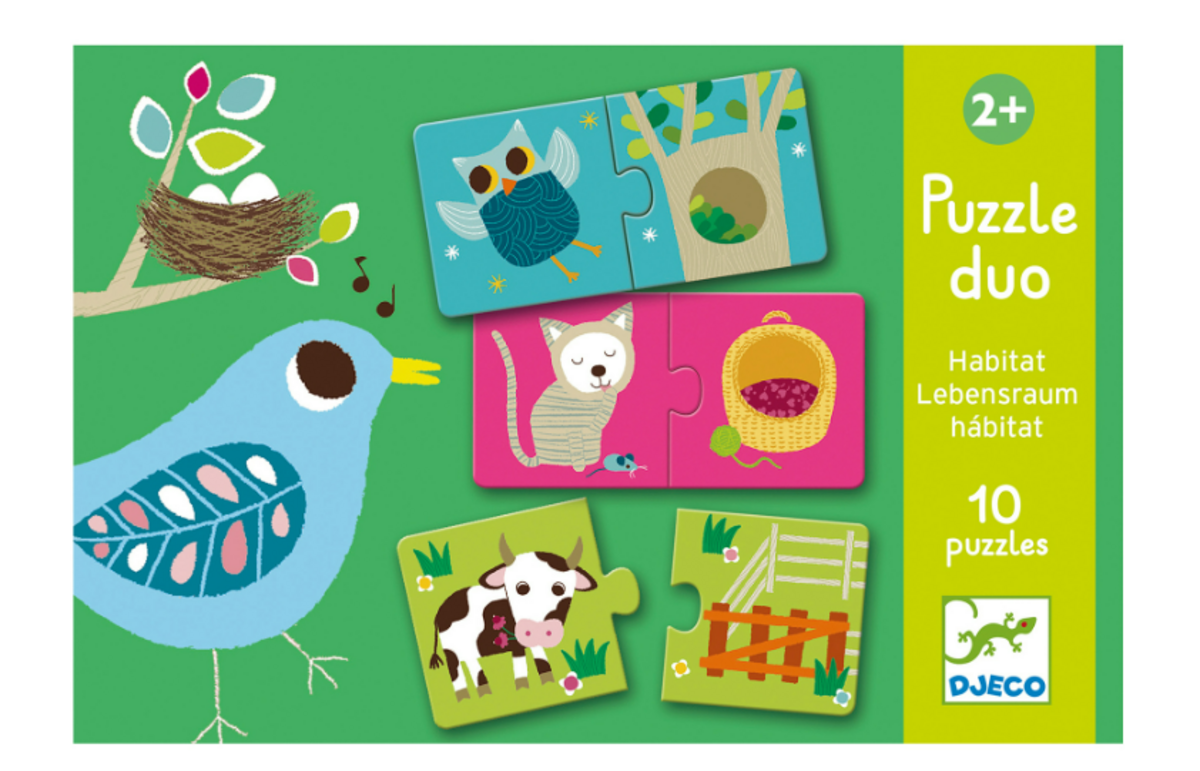Ovaj veseli set to će vam i pokazati. Set čini 10 slagalica, a svaka se sastoji od 2 puzzle. Potrebno je spojiti životinju s njezinom kućicom. Osim što djecu uči prepoznavati vrste životinja i njihova prirodna staništa, ove puzzle razvijaju motoriku jer će malene ručice morati spojiti puzzle.