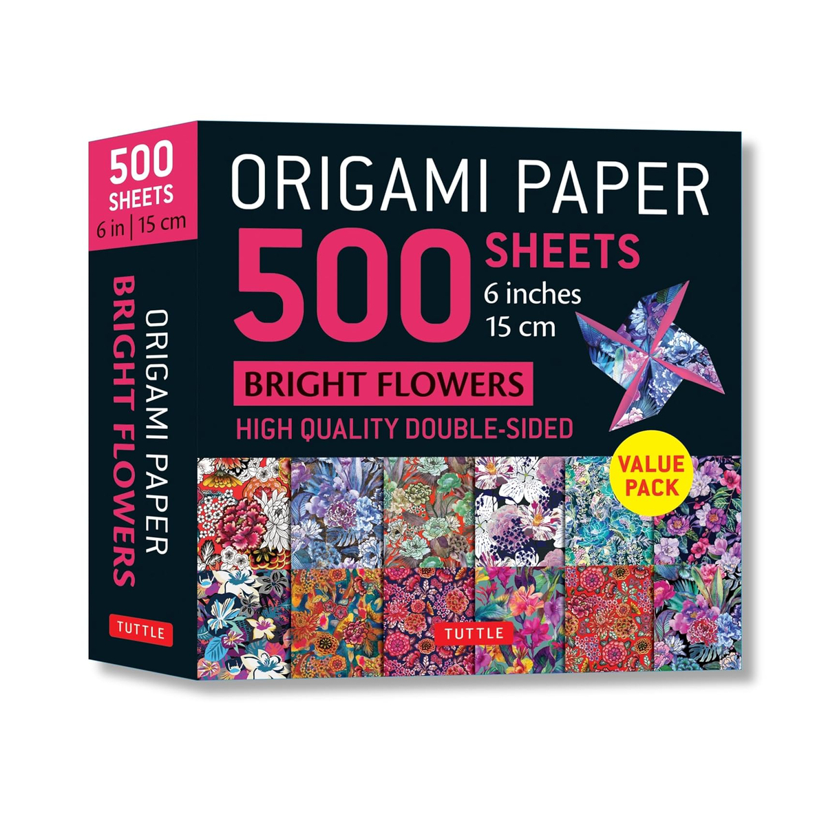 Pakiranje koje sadrži 500 visokokvalitetnih origami papira s otiscima n temu cvijeća. Dovedite svoj origami u potpuno novu dimenziju! 12 različitih dizajna jedinstvenih za ovo pakiranje, a svi su papiri otisnuti kontrastnom bojom na poleđini kako bi se pružile estetski ugodne kombinacije u origami modelima koji pokazuju i prednju i stražnju stranu listova.