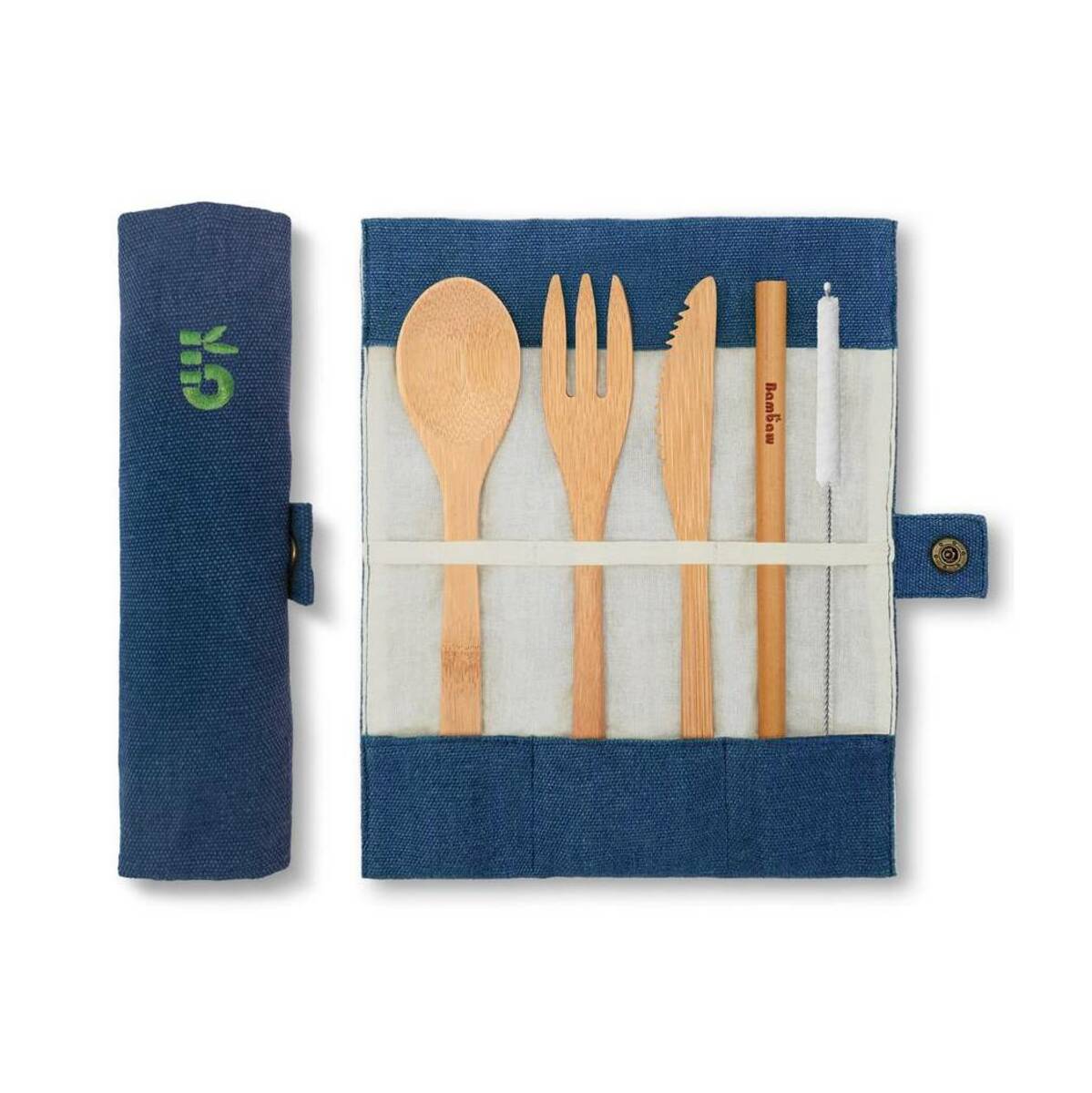 Najbolje održivo rješenje bez plastike za uživanje u obroku izvan kuće bez zagađivanja okoliša. Set, izrađen od bambusa, sadrži vilicu, žlicu, nož i slamku te pripadajuću četku za čišćenje. Ako ga imate u autu, torbi ili u uredu, potaknut će vas da što rjeđe koristite jednokratni, plastični pribor za jelo.