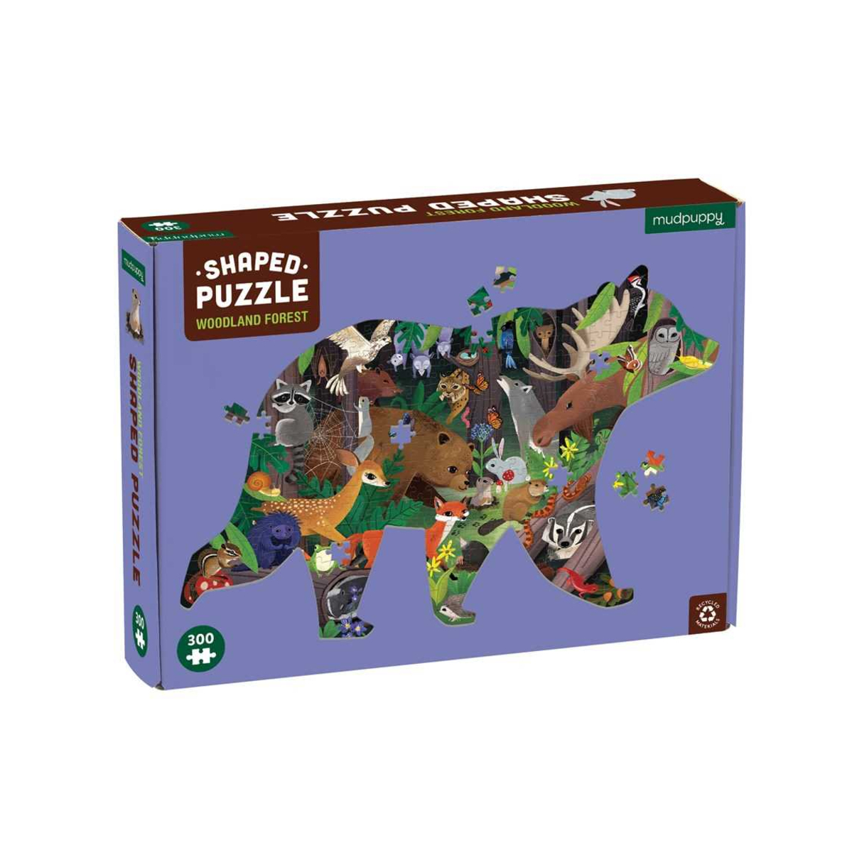 Mudpuppy puzzle od 300 komada u obliku medvjeda sa šarenim ilustracijama šumskih životinja.