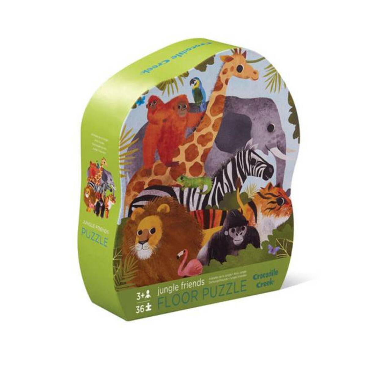 Prekrasno ilustrirana podna slagalica koja prikazuje različite životinje iz džungle. Sastoji se od 36 komada koji su napravljeni od visokokvalitetnog kartona i tiskani bojama na bazi soje.
