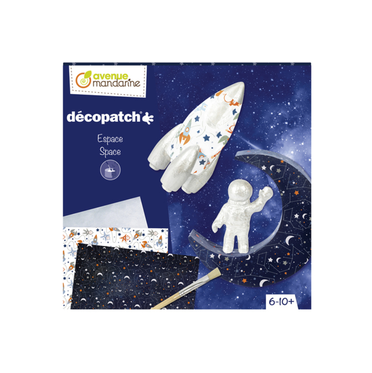 Sadržaj: modeli (raketa, astronaut, mjesec), 3 Decopatch lista, kist, ljepilo, upute
