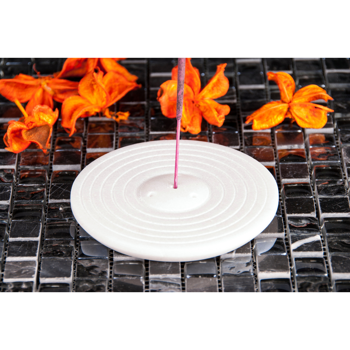 Držač za mirisne štapiće. Napravljen je od mramora koji predstavlja čistoću i pozitivnu transformaciju.