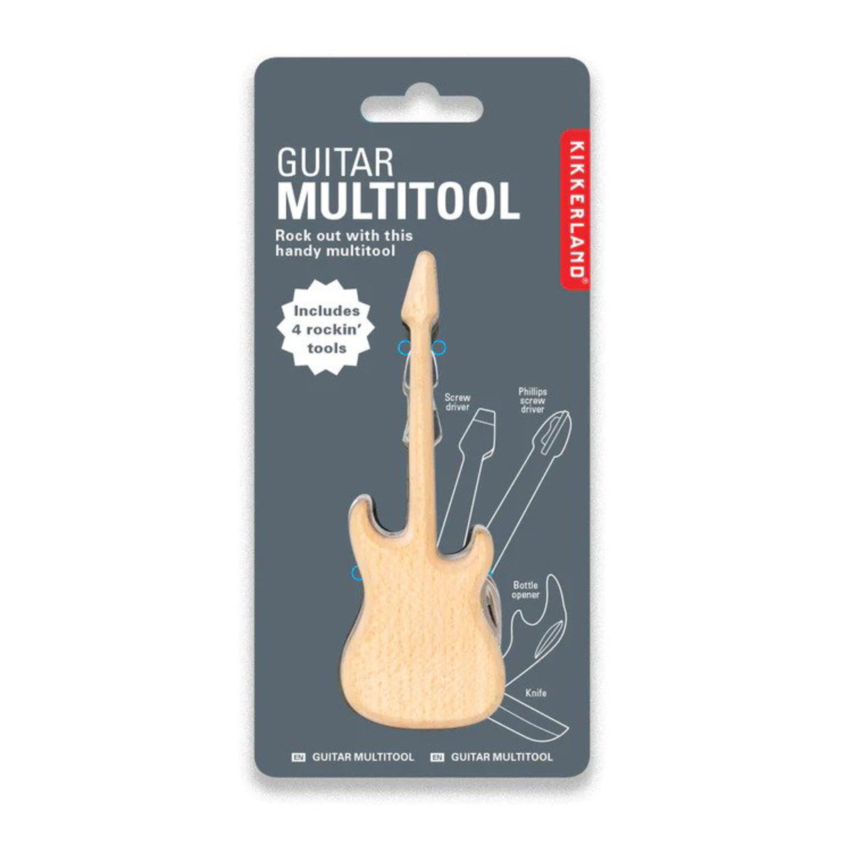 Ovaj koristan alat u obliku gitare unijet će zabavu u vaše svakodnevne zadatke. Uključuje: mali nož, otvarač za boce, 2 vrste odvijača.