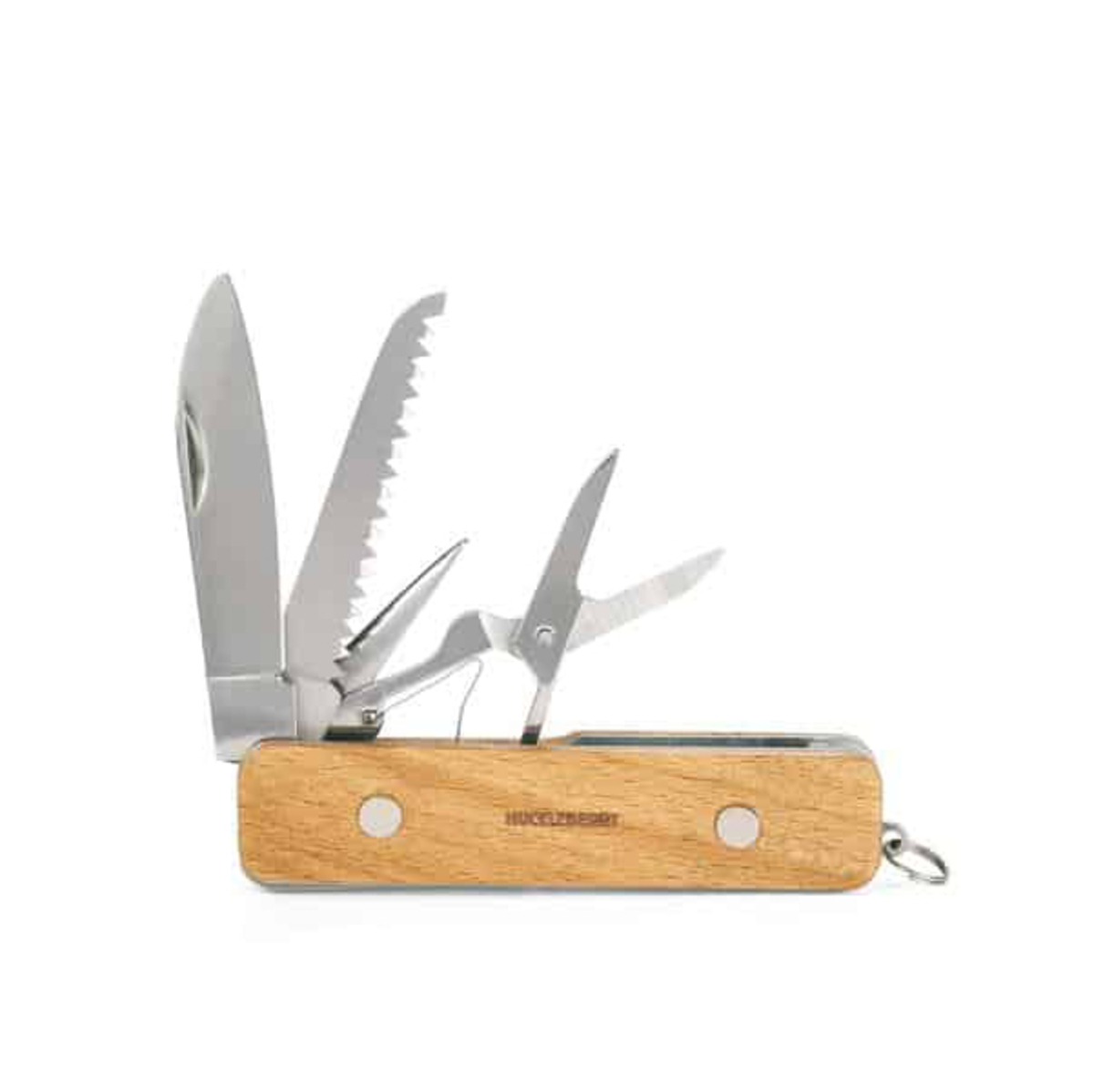 Ovaj džepni nož ima sve što vam je potrebno za boravak na otvorenom – pilu, nož, škare i šilo.