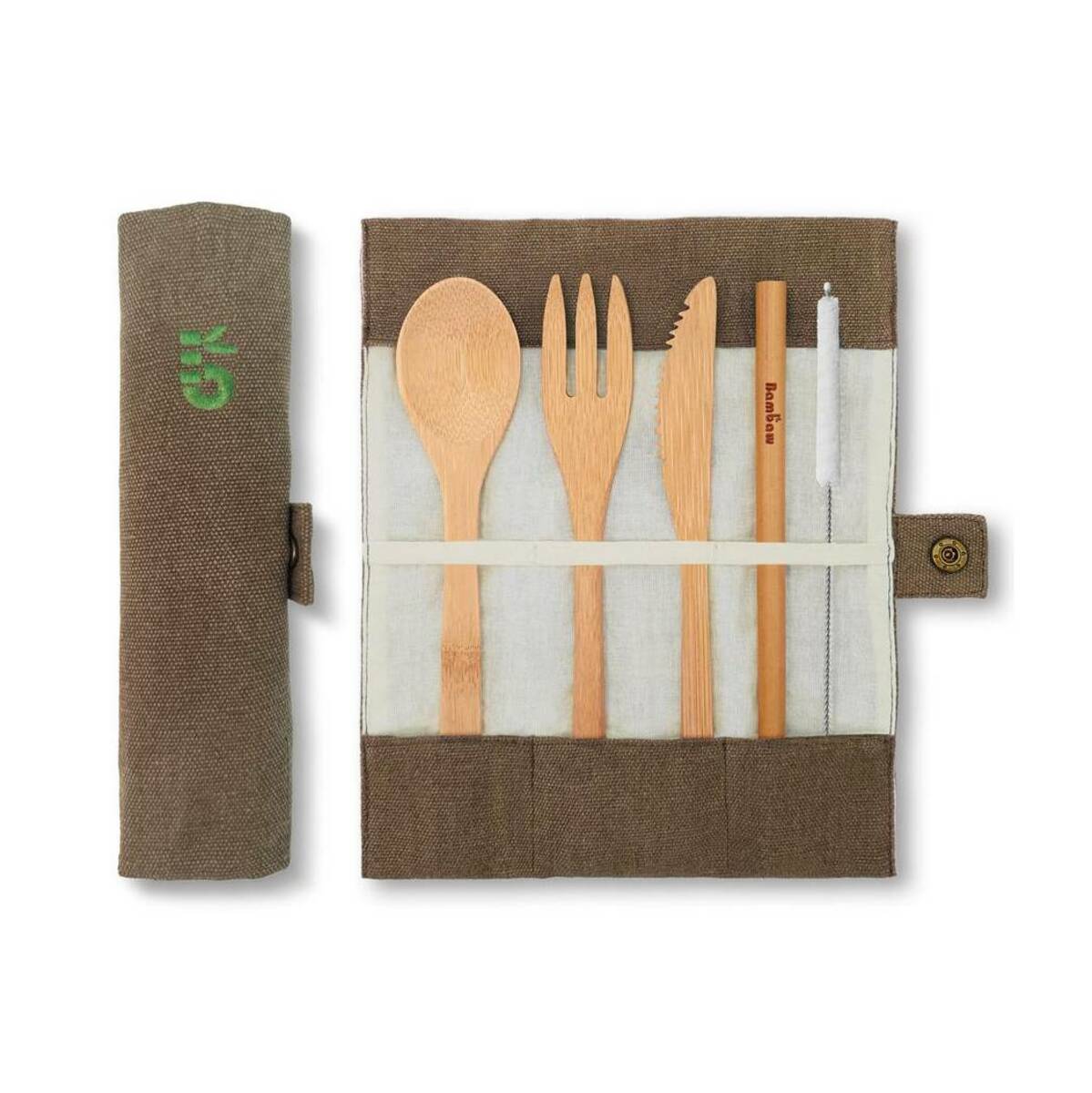 Najbolje održivo rješenje bez plastike za uživanje u obroku izvan kuće bez zagađivanja okoliša. Set, izrađen od bambusa, sadrži vilicu, žlicu, nož i slamku te pripadajuću četku za čišćenje. Ako ga imate u autu, torbi ili u uredu, potaknut će vas da što rjeđe koristite jednokratni, plastični pribor za jelo.