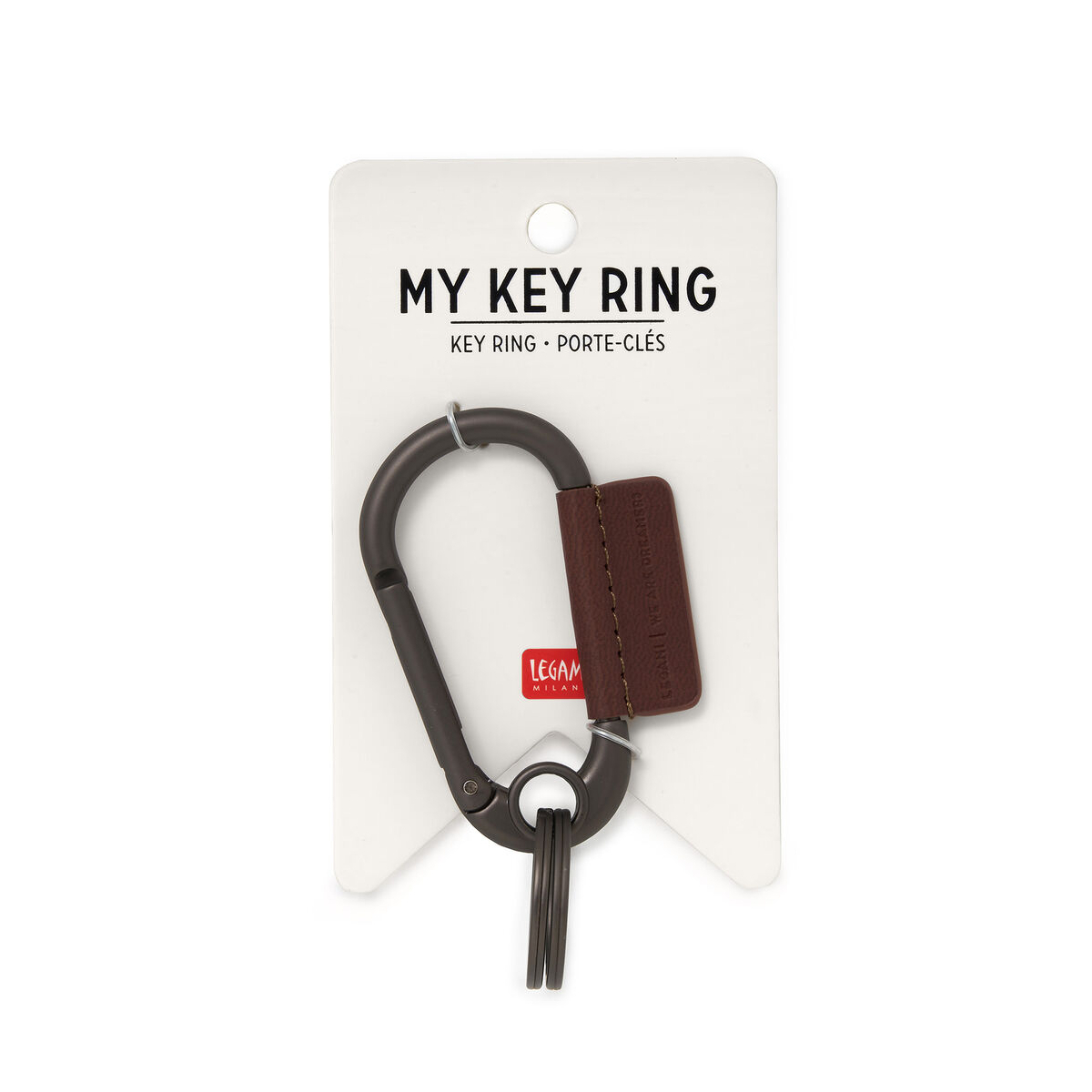 Praktičan Legami privjesak s dva prstena za ključeve i širokom kopčom kojom ga možete pričvrstiti na torbu ili remen.