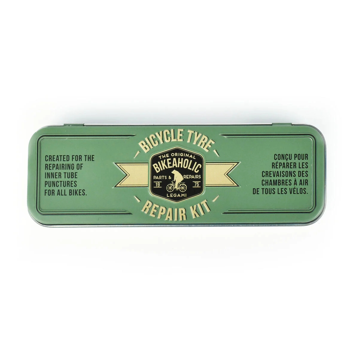 Budite sami svoj mehaničar uz Legamijev Bikeaholic set za popravak bicikla. Set sadrži 2 metalne poluge, 6 raznih zakrpa, 1 x 10 cc tube gumenog cementa, 1 strugač, 1 voštanu bojicu i 1 komad krede.