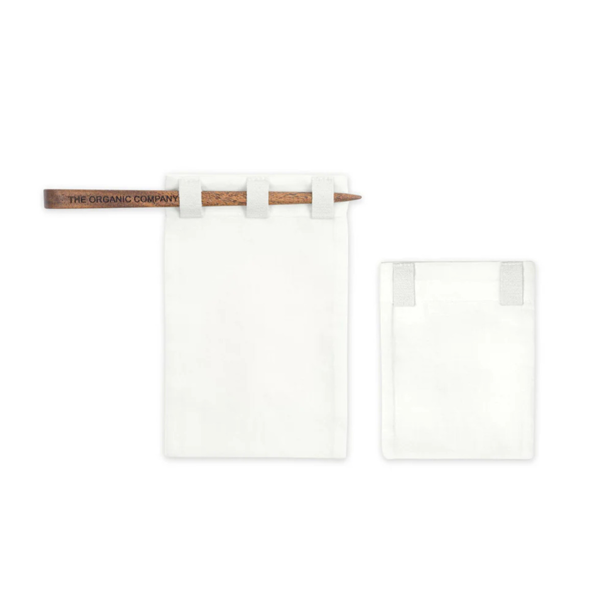 Vrećice su od napravljene od nebijeljenog 100% GOTS certificiranog organskog pamuka, a štapić od bukvinog drva koji potječe iz recikliranog drvenog otpada.
