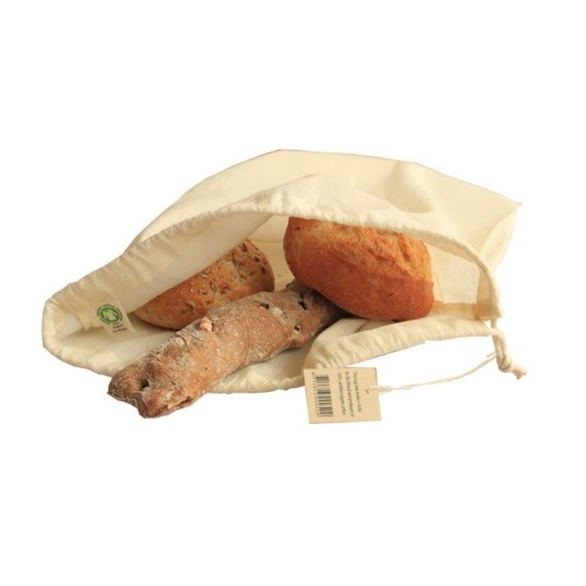 Vrećice su izrađene od 100% certificiranog organskog pamuka i izrađene su u Indiji. Vrećice se mogu strojno prati na niskoj temperaturi.