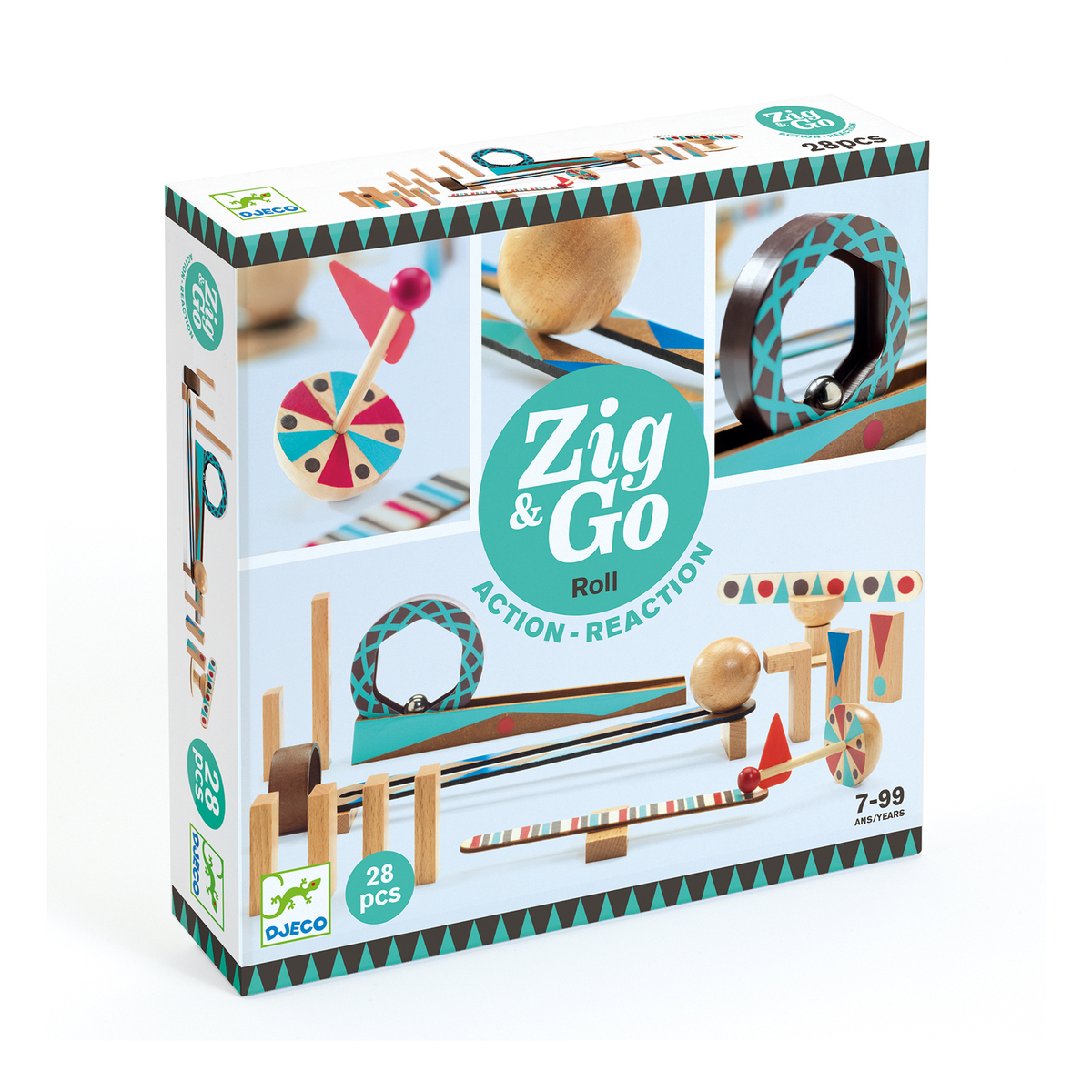 Zig&Go je drveni konstrukcijski set za izgradnju velikog broja konstrukcija s različitim akcijama i reakcijama. Nakon gradnje, pomakni dio konstrukcije i započni lančanu reakciju. Promatraj ovo zabavno rušenje koje je u početku sporo, ali postepeno ubrzava dok se krug ne zatvori.