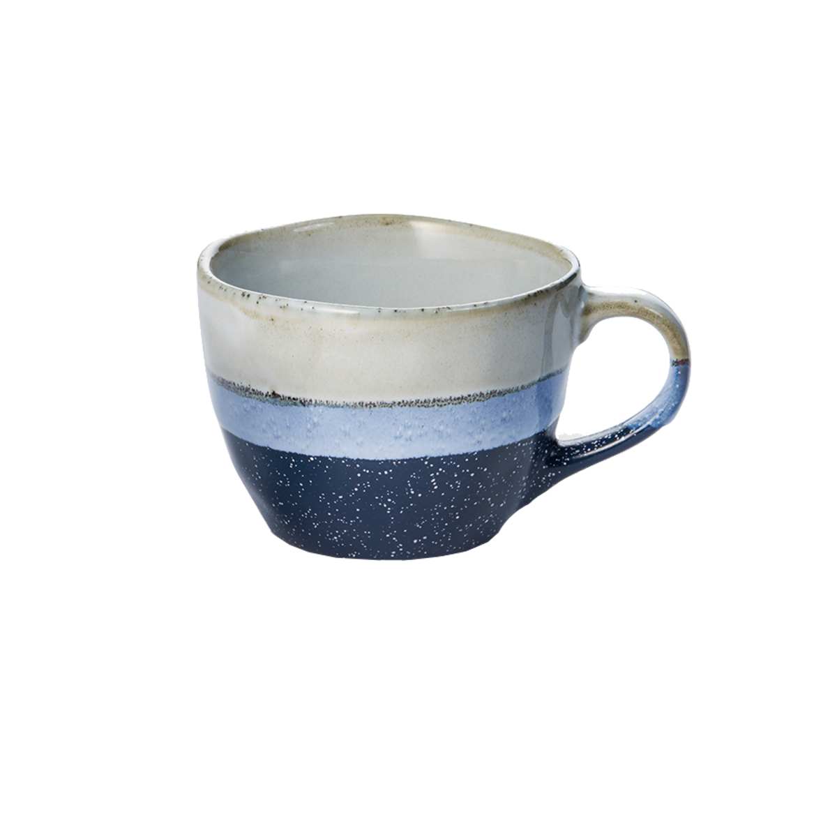 Šalica s prekrasnom reaktivnom glazurom koja nastaje procesima taljenja i oksidacije tijekom pečenja i stvara uzbudljive prijelaze boja. Oni naglašavaju ručno izrađenu optiku ovog predmeta i čine svaku šalicu jedinstvenom.