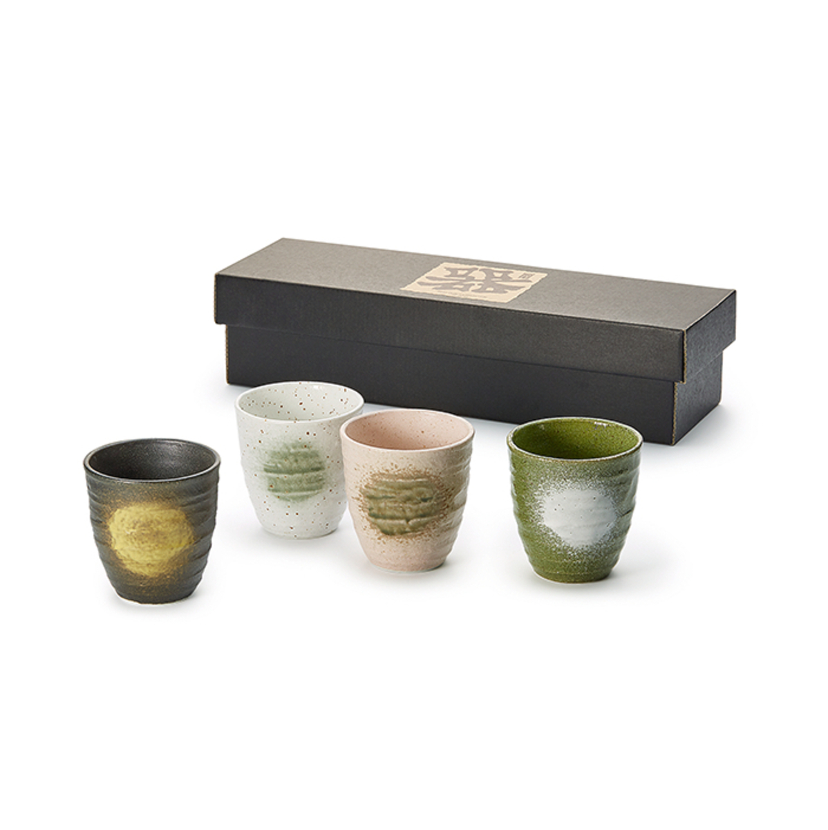 Set uključuje četiri šalice u crnoj, bijeloj, zelenoj i krem boji. Upakirane su u odgovarajuću poklon kutiju. Njihov dizajn inspiriran je tradicionalnim japanskim običajem ispijanja čaja.